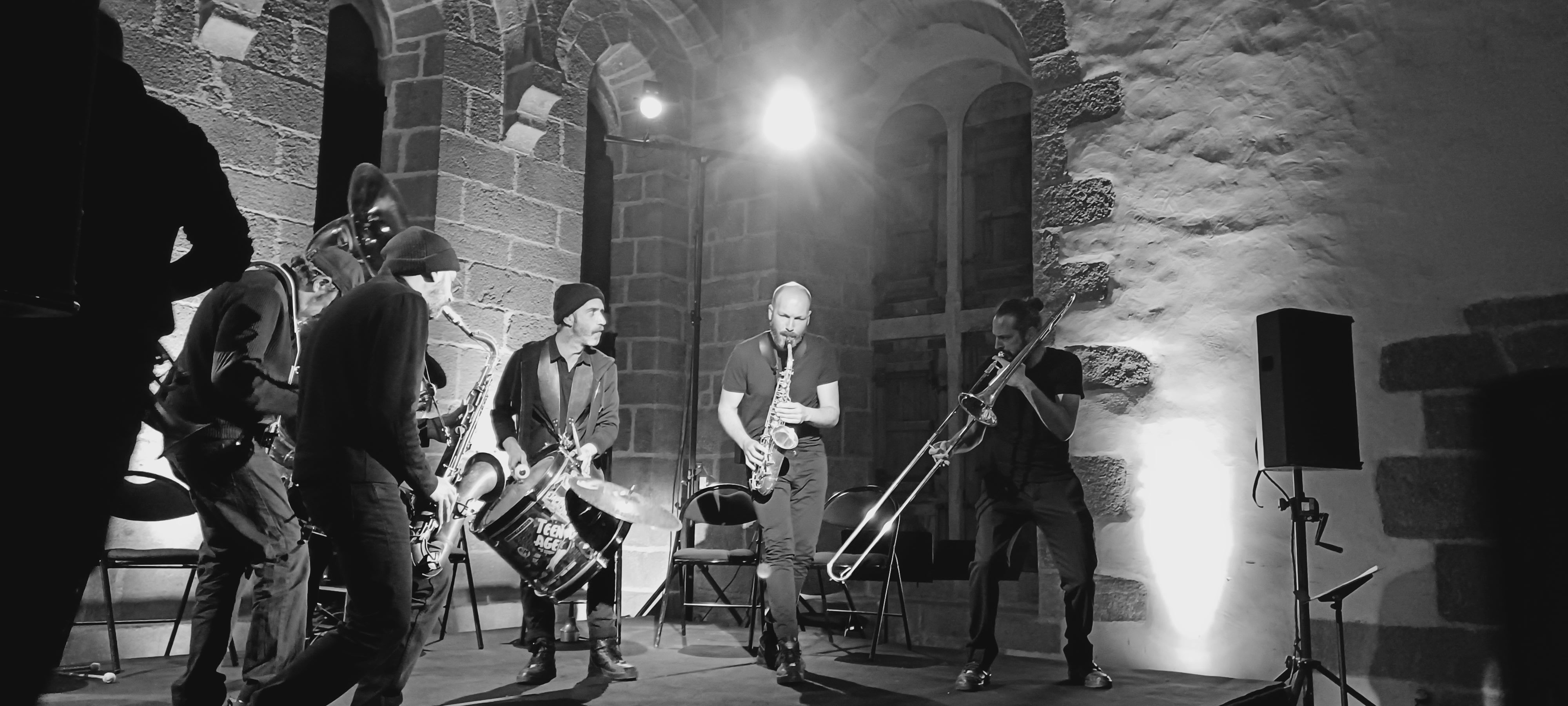 La Fanfare Saugrenue sur scène avec Jacques Gamblin